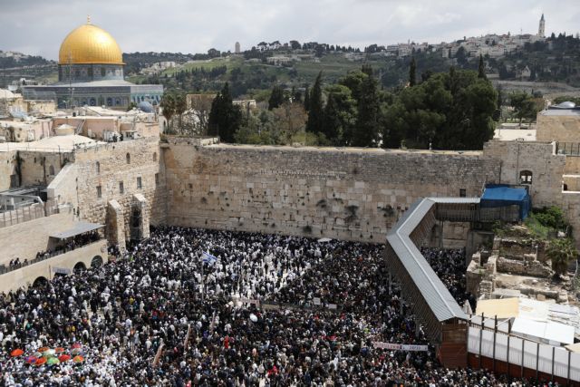 Χιλιάδες Εβραίοι με τις παραδοσιακές μαντήλες να σκεπάζουν τα κεφάλια τους, συγκεντρώθηκαν σήμερα στο Τείχος των Δακρύων, τον ιερότερο τόπο του Ιουδαϊσμού, στην Ιερουσαλήμ για να γιορτάσουν το Εβραϊκό Πάσχα: την «Εξοδο», το πέρασμα των Ιουδαίων από τη δουλεία των Φαραώ της Αιγύπτου, στη Γη της Επαγγελίας, με αρχηγό τους τον Μωυσή.