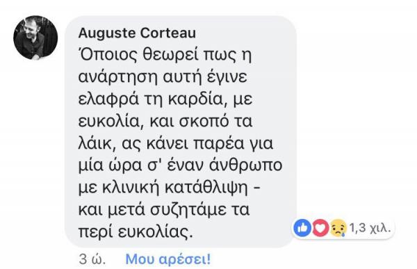 Ο Αύγουστος Κορτώ φυσικά έχει προβλέψει ότι η ανάρτησή του θα προκαλέσει κακοπροαίρετες αντιδράσεις και είχε ήδη τις απαντήσεις. Τις κατάλληλες απαντήσεις.