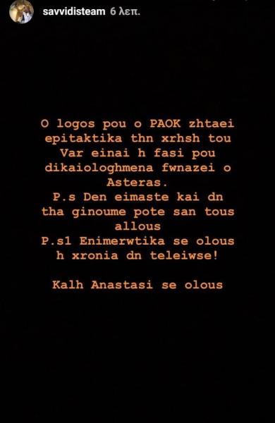 Ο Γιώργος Σαββίδης με ανάρτηση του στο Instagram τοποθετήθηκε για τη φάση που καταγράφηκε στο 47ο λεπτό του αγώνα Κυπέλλου Αστέρας Τρίπολης – ΠΑΟΚ. Θυμίζουμε ότι οι Αρκάδες διαμαρτυρήθηκαν δικαιολογημένα για την ακύρωση κανονικού γκολ του Κοσμά Τσιλιανίδη.