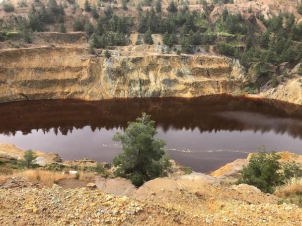 Συγκεκριμένα στο νερό εντοπίζεται χαλκοπυρίτης και σιδηροπυρίτης, αφού η συγκεκριμένη λίμνη της Κοκκινοπεζούλας δημιουργήθηκε από την εξόρυξη μετάλλου στο Μιτσερό, ενώ το νερό της λίμνης έχει χρωματιστεί κόκκινο από τα μεταλλεύματα και η υψηλή οξύτητά του και δεν επιτρέπει την ανάπτυξη οποιουδήποτε ζωντανού οργανισμού.