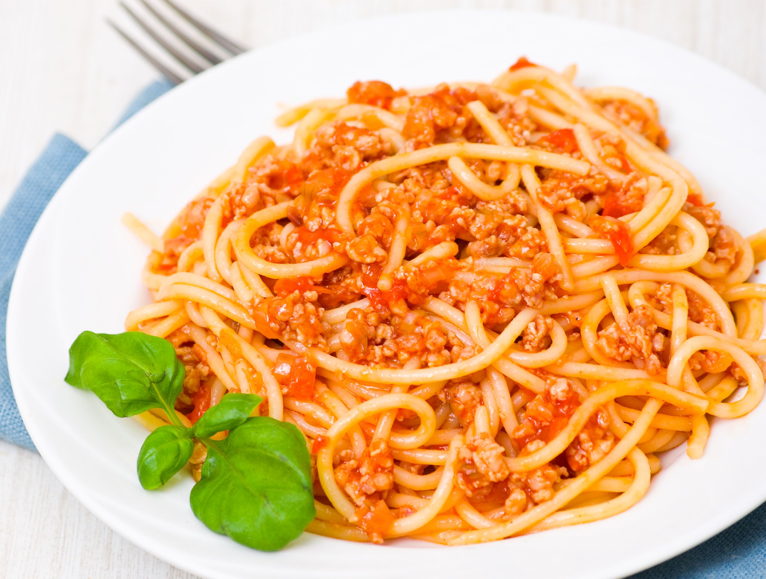 Σε αντικολλητικό τηγάνι σοτάρουμε το κρεμμύδι με 1 κ.σ. ελαιόλαδο και 1 κ.σ. καστανή ζάχαρη. Μόλις γυαλίσει, προσθέτουμε το καρότο και τον κιμά και τον μαγειρεύουμε μέχρι να πιει όλα τα υγρά του και να πάρει ωραίο χρώμα. Προσθέτουμε το κάρυ, το μπαχάρι, το μοσχοκάρυδο, την πάπρικα, το αλάτι και το πιπέρι και ανακατεύουμε για 2-3 λεπτά. Στη συνέχεια ρίχνουμε και τον πελτέ ντομάτας και συνεχίζουμε το μαγείρεμα για άλλα 5 λεπτά. Τέλος, ρίχνουμε τον χυμό ντομάτας και αφήνουμε να σιγοβράσει έως ότου απορροφηθούν όλα τα υγρά. Βράζουμε τα σπαγγέτι με βάση τις οδηγίες της συσκευασίας. Γαρνίρουμε προαιρετικά με φρεκοτριμμένο πιπέρι ή φρέσκο ψιλοκομμένο μαϊντανό.