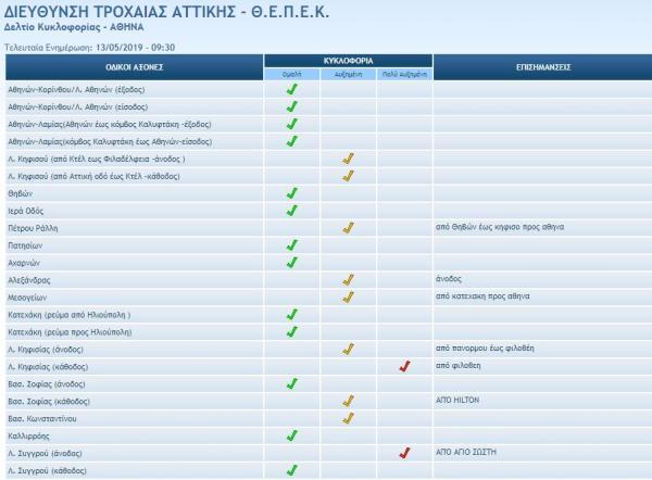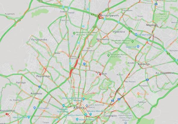 Το μεγαλύτερο πρόβλημα εντοπίζεται και στα δύο ρεύματα της Λεωφόρου Κηφισού με τα αυτοκίνητα να είναι ακινητοποιημένα από το ύψος του ΚΤΕλ έως την Φιλαδέλφεια (στην άνοδο) και από την Αττική Οδό έως τα ΚΤΕΛ (στην κάθοδο).