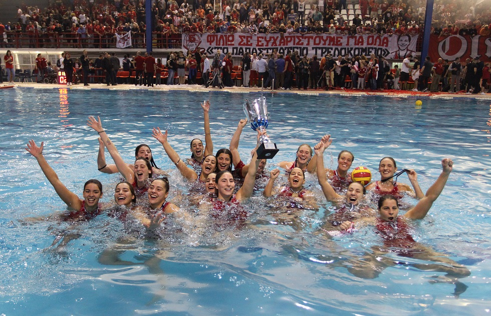 Η γυναικεία ομάδα πόλο του Ολυμπιακού επικράτησε με 7-5 της Βουλιαγμένης στο 5ο παιχνίδι της σειράς και κατέκτησε το 6ο συνεχόμενο πρωτάθλημα, συνεχίζοντας την εντός των τειχών κυριαρχία της.