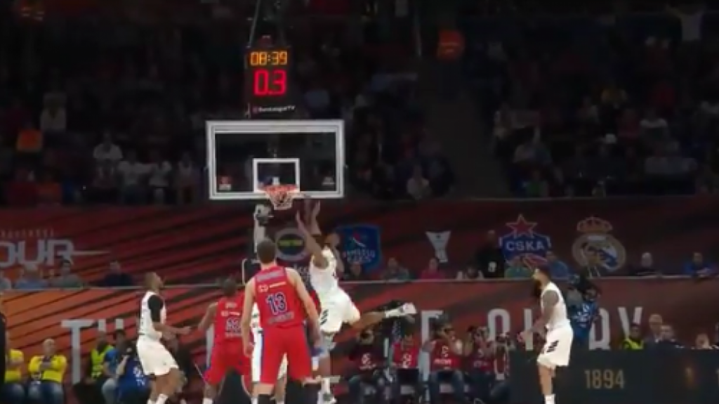 Ο Ουίλ Κλάιμπερν στα πρώτα της τρίτης περιόδου στο παιχνίδι της ΤΣΣΚΑ Μόσχας με τη Ρεάλ Μαδρίτης προσέφερε τη φάση του Final Four με το πόστερ κάρφωμά του στον Έντι Ταβάρες.