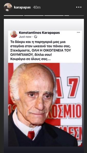 Το δικό του μήνυμα συμπαράστασης στον Ηλία Υφαντή, έστειλε και ο διευθυντής επικοινωνίας των ερυθρόλευκων, Κώστας Καραπαπάς.