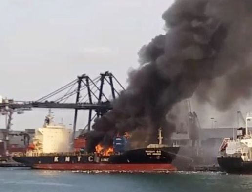 Κόκκινες φλόγες και πυκνός μαύρος, αλλά και λευκός καπνός έβγαιναν από το νοτιοκορεατικό πλοίο KMTC Hongkong Co., στην διάρκεια του σημερινού πρωινού, αλλά και μέχρι νωρίς το απόγευμα στην αποβάθρα Α2, σύμφωνα με δηλώσεις της διοίκησης του λιμανιού.