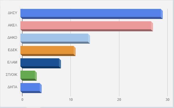 Με καταμετρημένο το 98% των ψήφων παγκυπρίως φέρεται να λαμβάνουν: ΔΗΣΥ 29%, ΑΚΕΛ 27% , ΔΗΚΟ 14% , ΕΔΕΚ 11%, ΕΛΑΜ 8%, ΔΗΠΑ 4% , Οικολόγοι-Συμμαχία Πολιτών 3% και Γιασεμί 2%, όπως μεταδίδουν τα κυπριακά μέσα ενημέρωσης.