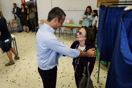 Συνοδευόμενος από τον γιο του Κωνσταντίνο ο πρόεδρος της ΝΔ άσκησε το εκλογικό δικαίωμά του στο σχολικό συγκρότημα της οδού Λεβίδου στην Κηφισιά λίγο πριν τις 11 το πρωί. Δεκάδες πολίτες που βρίσκονταν στο εκλογικό κέντρο υποδέχθηκαν με χειροκροτήματα και επευφημίες τον Κυριάκο Μητσοτάκη ενώ πολλοί ήταν αυτοί που έσπευσαν να τραβήξουν σέλφι μαζί του.