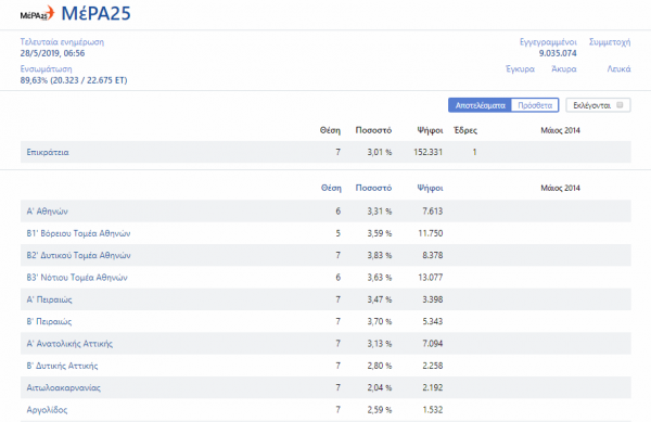 Με αυτά τα δεδομένα ο κ. Βαρουφάκης κερδίζει την έδρα, ωστόσο το ποσοστό του ΜέΡΑ25 παρουσιάζει πτωτική τάση. Είναι χαρακτηριστικό ότι τις τελευταίες ώρες υποχώρησε κατά 0,01% γεγονός που δεν αποκλείεται να συνεχιστεί καθώς ακόμα υπολείπεται σημαντικό ποσοστό του συνόλου των ψήφων προς καταμέτρηση.