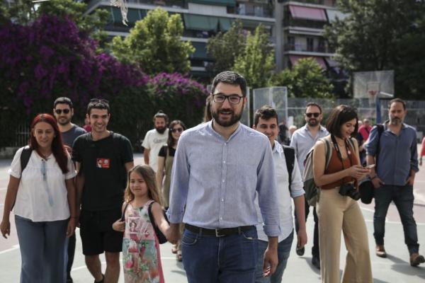 Χαμογελαστός, ευδιάθετος και αισιόδοξος, κρατώντας από το χέρι ένα κοριτσάκι, ο υποψήφιος Δήμαρχος της Αθήνας Νάσος Ηλιόπουλος άσκησε το εκλογικό του δικαίωμα στο 53ο Γενικό Λύκειο Αθηνών.