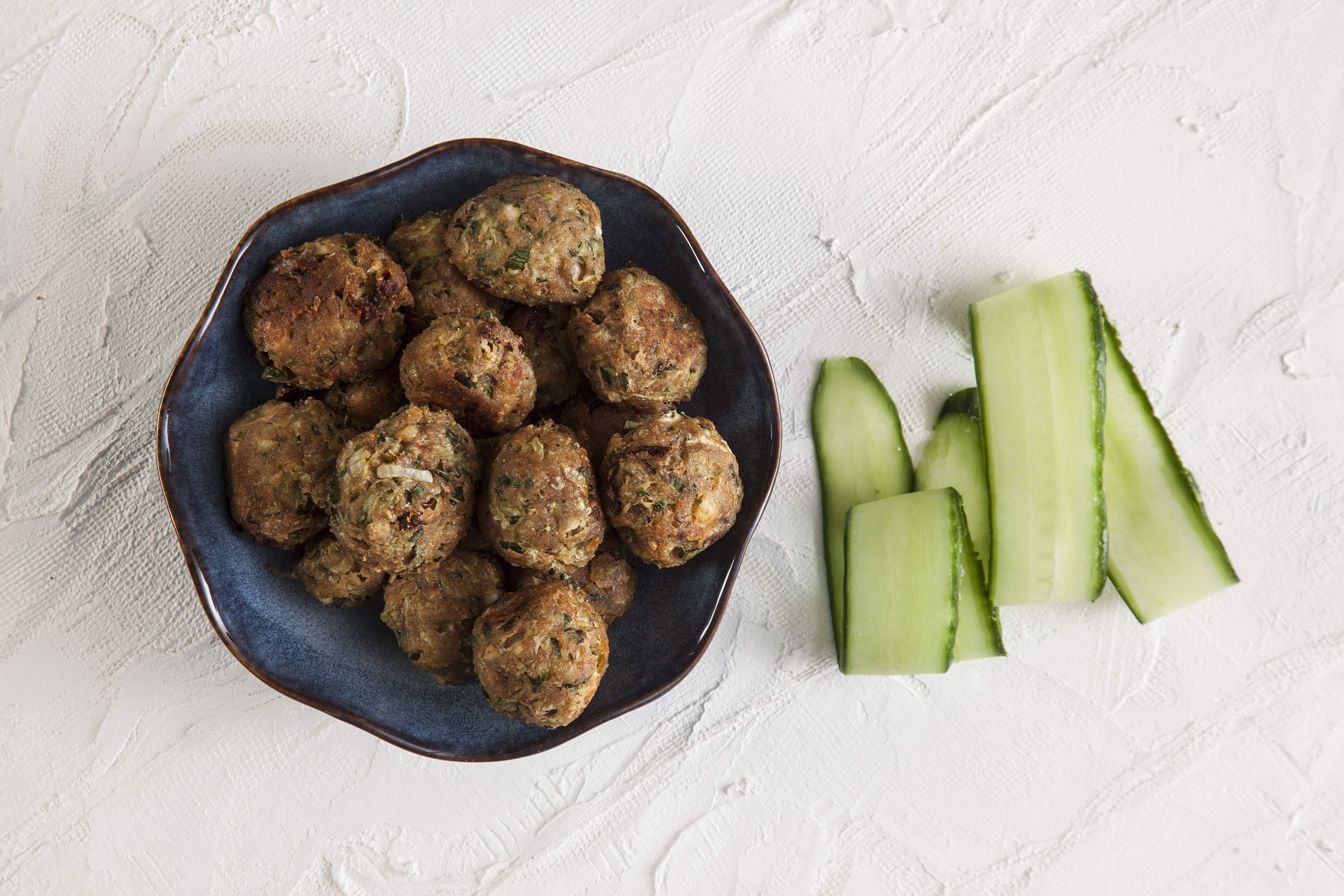 Tρίβουμε τα αγγούρια από τη χοντρή πλευρά του τρίφτη. Πασπαλίζουμε με λίγο αλάτι. Ανακατεύουμε καλά και αφήνουμε σε ένα σουρωτήρι για 1 ώρα να βγάλουν τα υγρά τους. Αφού περάσει μία ώρα πιέζουμε τα αγγούρια με τα χέρια μας πάρα πολύ καλά, με δύναμη, να βγάλουν το νερό τους και τα μεταφέρουμε σε ένα μπολ. Βάζουμε όλα τα υλικά και ανακατεύουμε καλά. Αφήνουμε για 15 λεπτά να τραβήξει η βρόμη την υγρασία. Πλάθουμε σε μικρές μπαλίτσες και τις πατάμε ελαφρά. Τις περνάμε από το αλεύρι και τις τηγανίζουμε σε καυτό λάδι μέχρι να πάρουν ωραίο χρώμα.