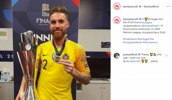 Ο Πορτογάλος πορτιέρε του Ολυμπιακού Ζοσέ Σα κατέκτησε το Nations League με το αντιπροσωπευτικό συγκρότημα της χώρας του, και η ερυθρόλευκη ΠΑΕ δεν παρέλειψε να τον συγχαρεί με σχετική ανάρτηση στα επίσημα social media του συλλόγου.