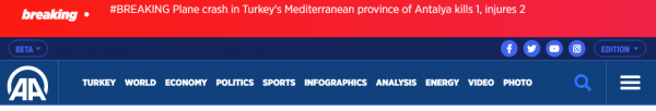 Τουρκία : Συνετρίβη αεροσκάφος στην Αττάλεια –  Ένας νεκρός