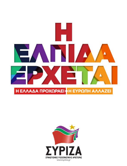 Πέρα από τη σημειολογία της αφίσας με τα πλούσια χρώματα τότε, σε αντίθεση με το μαύρο που κυριαρχεί σήμερα, ο ΣΥΡΙΖΑ του 2019 εμμέσως ομολογεί πως η ελπίδα που έταζε το 2015 (βρίσκοντας πολυάριθμους πρόθυμους να τον πιστέψουν) χάθηκε στα μισά του δρόμου, και γι’ αυτό ζητά άλλη μια ευκαιρία για να κάνει πραγματικότητα την ελπίδα που κάποτε… ερχόταν.