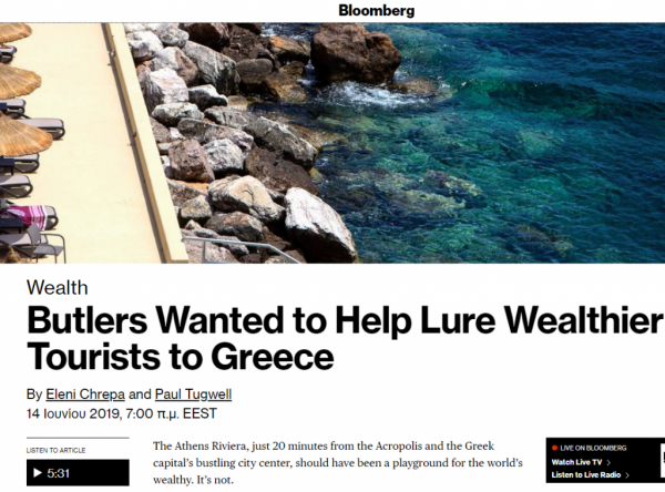 «Η Αθηναϊκή Ριβιέρα, που απέχει μόλις 20 λεπτά από την Ακρόπολη και το πολυσύχναστο κέντρο της πρωτεύουσας, θα έπρεπε να είναι ένας χώρος αναψυχής για τους πλούσιους του κόσμου. Ωστόσο, δεν είναι», αναφέρει χαρακτηριστικά το Bloomberg.