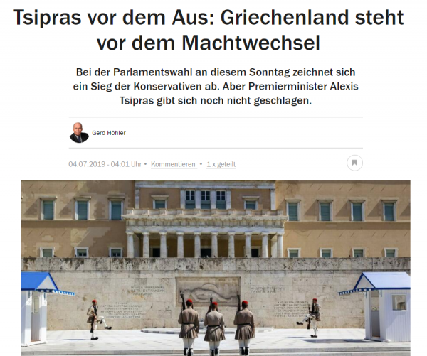 «Οι κοινοβουλευτικές εκλογές αυτή την Κυριακή είναι μια νίκη για τους Συντηρητικούς. Αλλά ο Πρωθυπουργός Αλέξης Τσίπρας δεν έχει κερδίσει ακόμη» γράφει η γερμανική εφημερίδα.