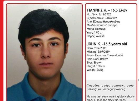 Ο Γιάννης Κ. 16,5 ετών εξαφανίστηκε στις 3 Ιουλίου στις 15:00 στον Εύοσμο.