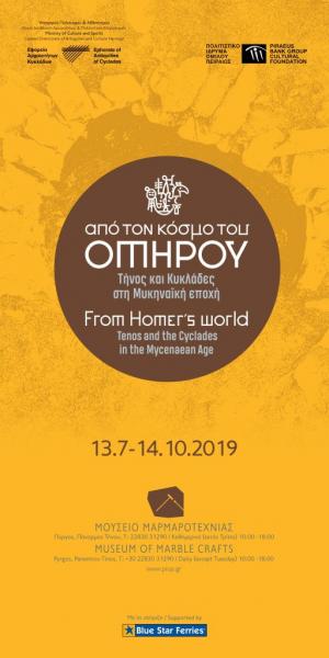 Η Εφορεία Αρχαιοτήτων Κυκλάδων διοργανώνει, σε συνεργασία με το Πολιτιστικό Ίδρυμα Ομίλου Πειραιώς, την περιοδική έκθεση «Από τον κόσμο του Ομήρου. Τήνος και Κυκλάδες στη Μυκηναϊκή εποχή», η οποία εγκαινιάζεται την Παρασκευή 12 Ιουλίου (ώρα 20:00), στο Μουσείο Μαρμαροτεχνίας του Ιδρύματος, στον Πύργο της Τήνου.