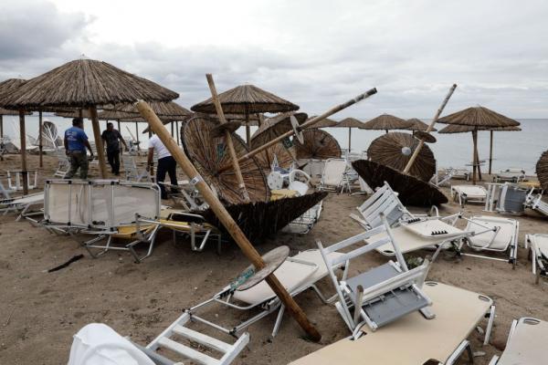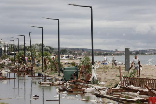 Τίποτα δεν θυμίζει το ξέγνοιαστο σκηνικό από τις ομορφιές της Χαλκιδικής που απολάμβαναν μέχρι χτες κάτοικοι και τουρίστες. Οι πεζόδρομοι είναι γεμάτοι από σκουπίδια αντί για τουρίστες, ενώ στις παραλίες ξαπλώστρες και ομπρέλες έχουν παρασυρθεί από τη μανία του ανέμου.