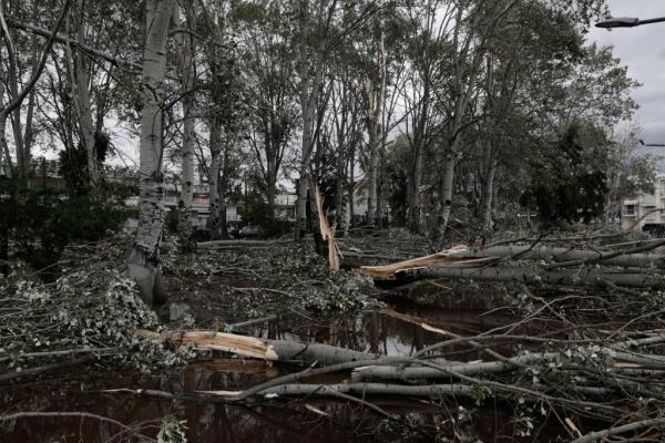 Συντρίμμια, διαλυμένα σπίτια, κατεστραμμένα οχήματα και ξεριζωμένα δέντρα συνθέτουν ένα χαοτικό σκηνικό που δείχνει την ισχύ της κακοκαιρίας.