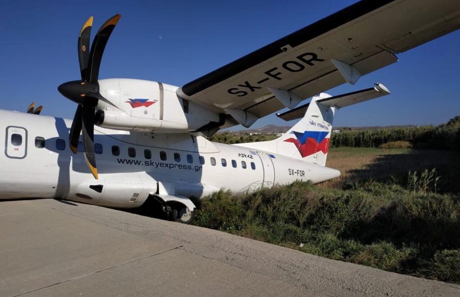 Από έναν λανθασμένο χειρισμό στη διαδικασία της απόγειωσης, το αεροσκάφος της Sky Express με προορισμό την Αθήνα βρέθηκε εκτός πορείας και κατέληξε σε χαντάκι.