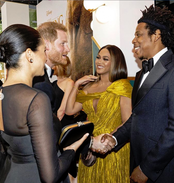 Ο Δούκας και η Δούκισσα του Σάσεξ βρέθηκαν στην ευρωπαϊκή πρεμιέρα της ταινίας κινουμένων σχεδίων «The Lion King» στη βρετανική πρωτεύουσα και συνάντησαν το πασίγνωστο χολιγουντιανό ζευγάρι, Μπιγιονσέ και Τζέι Ζι.