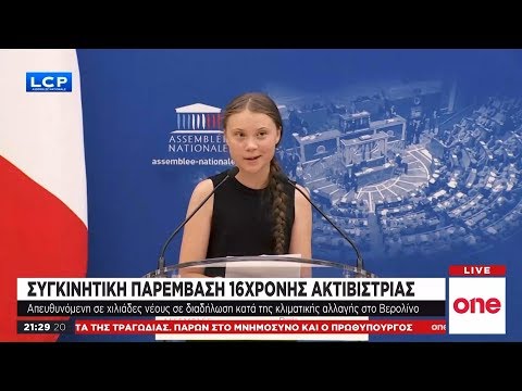 Συγκινητική ήταν η παρέμβαση της 16χρονης ακτιβίστριας από τη Σουηδία στη γαλλική εθνοσυνέλευση για την κλιματική αλλαγή. Αντιδράσεις προκλήθηκαν από το ακροδεξιό κόμμα της Μαρίν Λεπέν.
