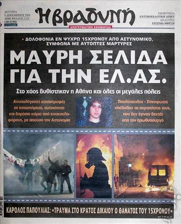Η αστυνομία κρατά παθητική στάση απέναντι στον όχλο, με αποτέλεσμα η βία να αυξάνεται όλο και περισσότερο. Χιλιάδες άτομα πραγματοποιούν πορείες στο κέντρο της Αθήνας. Εκατοντάδες κουκουλοφόροι που βρίσκονται ανάμεσά τους βρίσκουν την ευκαιρία και αρχίζουν να πυρπολούν ολόκληρα κτίρια. Τράπεζες, γραφεία, πολυκαταστήματα, ακόμα και μικρά μαγαζιά, φλέγονται και λεηλατούνται.
