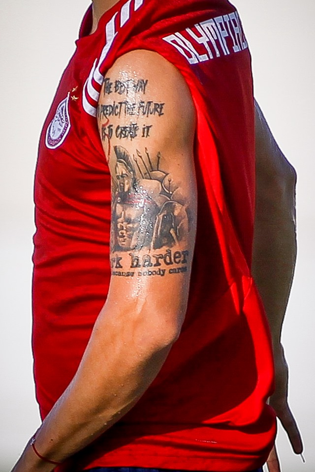 Εντυπωσιακό αν μη τι άλλο το τατουάζ του νεαρού ποδοσφαιριστή του Ολυμπιακού Σβέτοζαρ Μάρκοβιτς. Ο 19χρονος που φέτος ήρθε στην ομάδα του Πειραιά πήγε και «χτύπησε» ένα… αρχαιοελληνικό τατουάζ και συγκεκριμένα τον Λεωνίδα και τους «300».