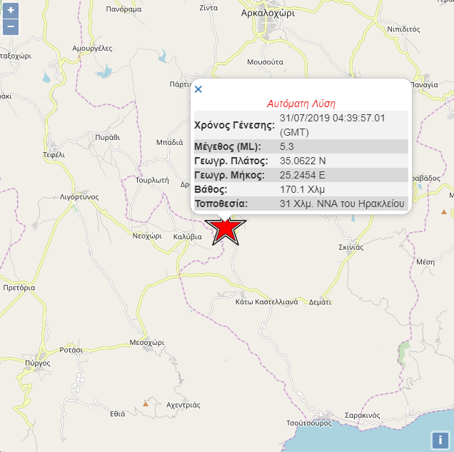 Σεισμός 5,3 Ρίχτερ, σύμφωνα με την αυτόματη λύση του Γεωδυναμικού Ινστιτούτου, σημειώθηκε πριν από λίγη ώρα στην Κρήτη και συγκεκριμένα στο Ηράκλειο.