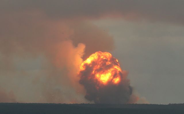 Από τις αποθήκες απομακρύνθηκε όλο το προσωπικό ενώ οι αρχές άρχισαν να εκκενώνουν τα χωριά Κάμενκα και Νόβι Ουλούι, που βρίσκονται κοντά στις αποθήκες, αλλά και την περιοχή σε ακτίνα 20 χιλιομέτρων, καθώς τα θραύσματα από τις οβίδες φθάνουν σε απόσταση 15 χιλιομέτρων.