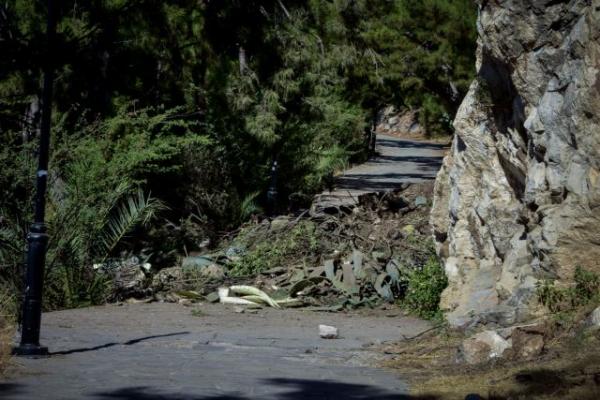 Το σημείο του συμβάντος είναι 30 μέτρα πριν την έξοδο προς Αρβανιτιά και όπως φαίνεται και από τις φωτογραφίες στον δρόμο έπεσαν βράχοι, χώματα και φραγκοσυκιές.