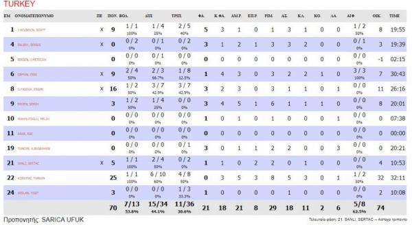 Όσον αφορά τους Τούρκους, η ομάδα τους αποτελείται από… τέσσερις παίκτες. Πρόκειται για τους Κορκμάζ, Ιλιασόβα, Γουίλμπεκιν και Οσμάν. Αυτοί οι τέσσερις παίκτες σκόραραν τους 59 από τους 70 πόντους! Οι υπόλοιποι απλά πρόσφεραν μία βοήθεια… 11 πόντων.