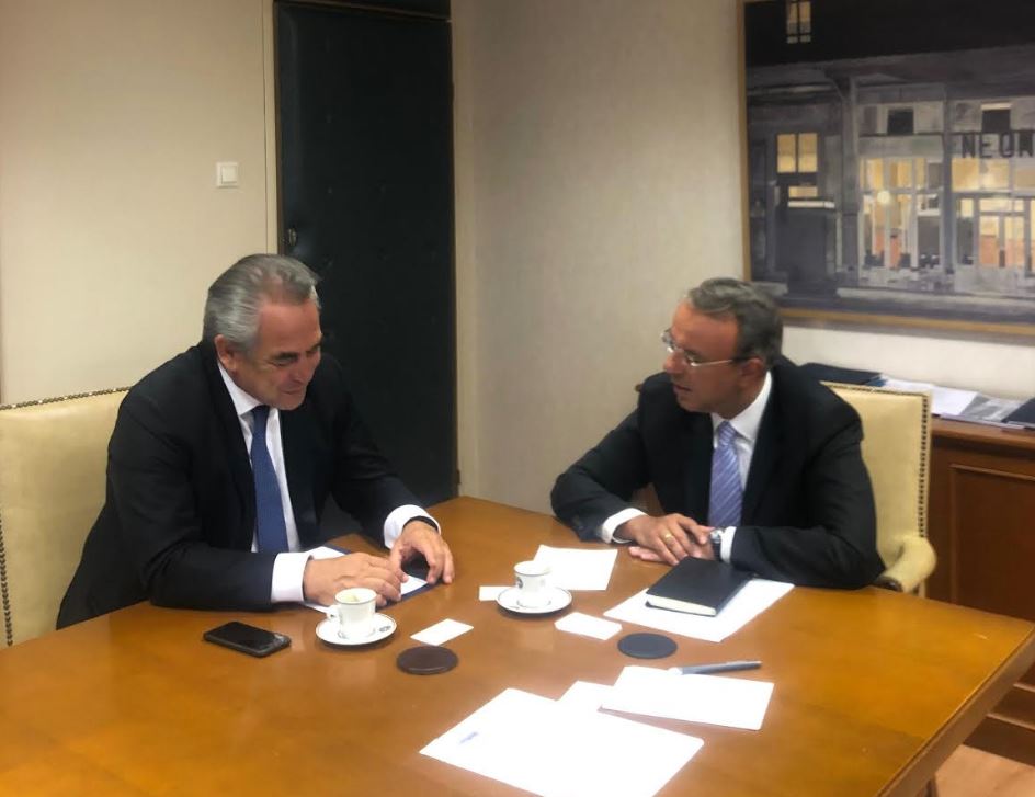 Στο πλαίσιο αυτό, ο υπουργός συναντήθηκε σήμερα, Πέμπτη, με τον πρόεδρο της Κεντρικής Ένωσης Επιμελητηρίων Ελλάδας και του Εμπορικού και Βιομηχανικού Επιμελητηρίου Αθηνών, Κωνσταντίνο Μίχαλο.