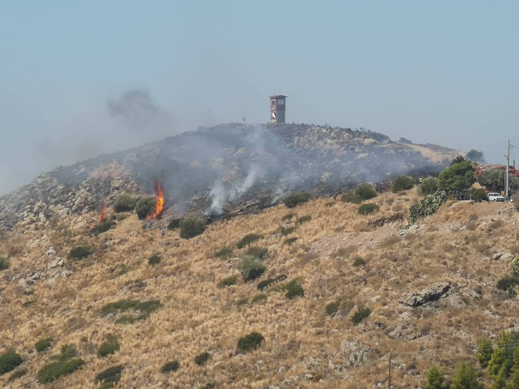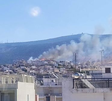 Σύμφωνα με την Πυροσβεστική, η φωτιά ξεκίνησε από παλιό λατομείο, όπου καίει ξερά χόρτα.