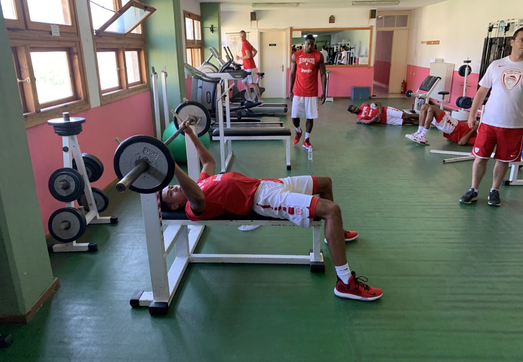 Οι Ερυθρόλευκοι πέρασαν το πρωινό τους στο γυμναστήριο και στα βάρη. Ο Ανδρέας Γκατζούλης ήταν αυτός που είχε υπό την εποπτεία του το πρόγραμμα τους και είχε άπαντες στην τσίτα.
