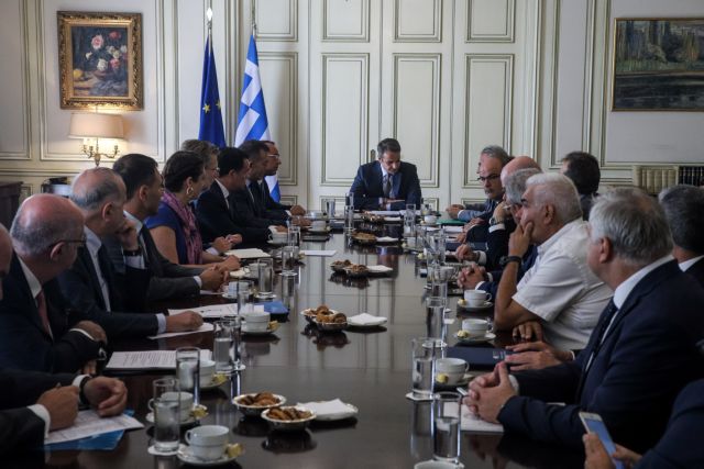 Σε κλίμα εποικοδομητικής συνεργασίας πραγματοποιήθηκε, σύμφωνα με πληροφορίες, η συνάντηση του πρωθυπουργού Κυριάκου Μητσοτάκη με τους εκπροσώπους των κοινωνικών εταίρων της ΓΣΕΕ, της ΕΣΕΕ, της ΓΣΕΒΕΕ, του ΣΕΤΕ, του ΣΕΒ και του ΣΒΕ, ενόψει της παρουσίας του στη Διεθνή Έκθεση Θεσσαλονίκης.