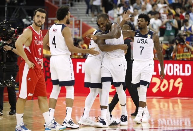 Στο καλύτερο παιχνίδι του Παγκοσμίου Κυπέλλου έως τώρα η Τουρκία έπαιξε στα «ίσα» την Team USA για τέσσερα δεκάλεπτα και το ματς πήγε στην παράταση, αφού ο Τέιτουμ με 2/3 βολές διαμόρφωσε το 81-81 στην εκπνοή της κανονικής διάρκειας. Ο Κρις Μίντλετον (συμπαίκτης του Γιάννη Αντετοκούνμπο στους Μπακς), μετά από συνεχόμενα λάθη των Τούρκων έδωσε το «φιλί της ζωής» στις ΗΠΑ και στην… Ελλάδα καθώς ευστόχησε και στις δύο βολές και «έγραψε» το τελικό 93-92.