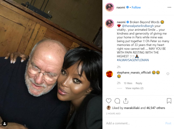 «Όταν ο Πίτερ Λίντμπεργκ φωτογράφιζε όλα είχαν να κάνουν με τις γυναίκες. Τα μαλλιά, το μακιγιάζ ή το στυλ, έρχονταν σε δεύτερη μοίρα. Είχε έναν τρόπο να μετατρέψει τις ατέλειες σε κάτι μοναδικό και όμορφο … και οι φωτογραφίες του θα είναι πάντα διαχρονικές. Θα μας λείψεις τόσο πολύ Πίτερ. Είναι τιμή μου να σε γνώρισα και συνεργάστηκα μαζί σου», έγραψε με τη σειρά της η Σίντι Κρόφορντ, στην ανάρτησή της στο Instagram.