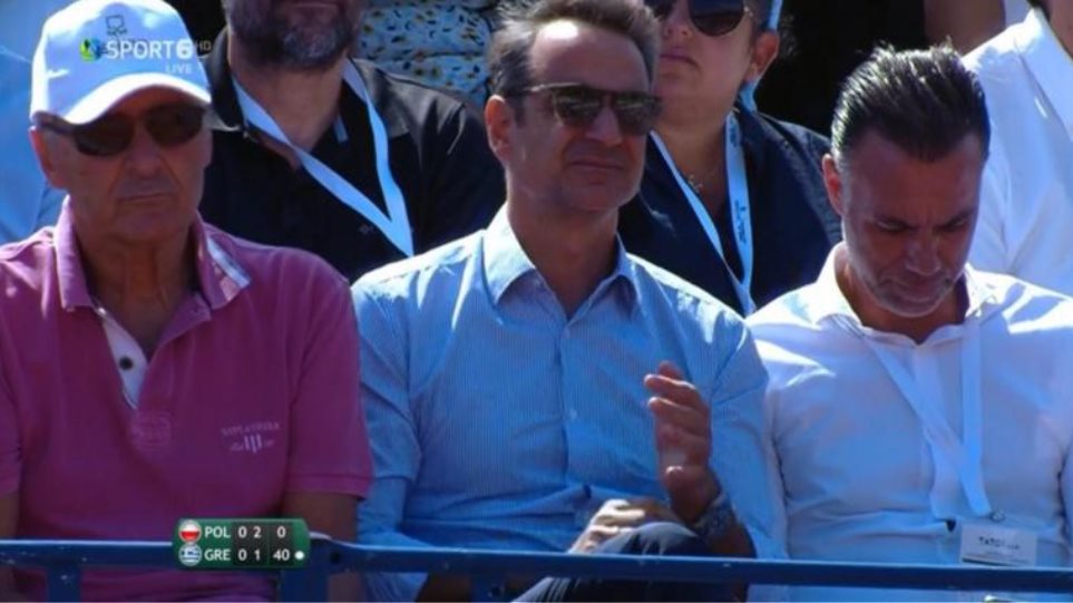 Τον αγώνα του του Στέφανου Τσιτσιπά και των υπόλοιπων αθλητών της ελληνικής αποστολής στο Davis Cup παρακολουθεί αυτή την ώρα ο Κυριάκος Μητσοτάκης.