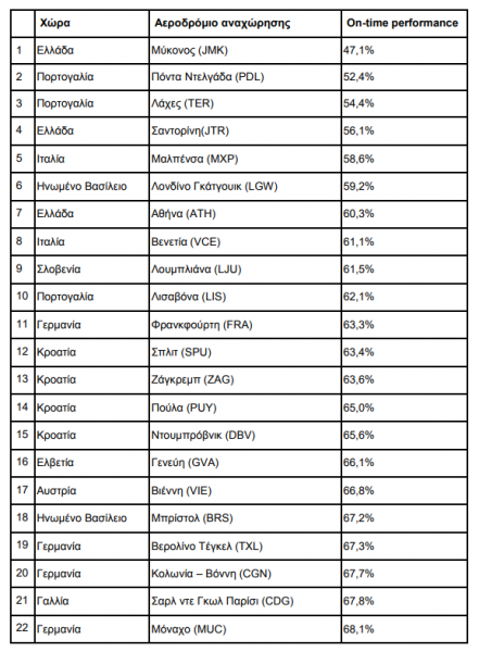 Αξίζει να σημειωθεί, σύμφωνα με την έρευνα, ότι στο αεροδρόμιο της Αθήνας σημειώθηκαν οι πτήσεις με τα περισσότερα προβλήματα.