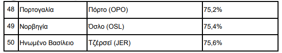 Εκτός από την Ελλάδα, στο top 10 της κατάταξης βρίσκονται και τα εξής αεροδρόμια της Πορτογαλίας: της Νήσου Πόντα Ντελγάδα, της Νήσου Λάχες και της Λισαβόνας.