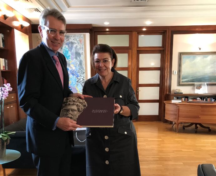 Ο κ. πρέσβης και η κ. Μενδώνη συμφώνησαν να συζητηθούν οι δυνατότητες και οι προτάσεις συνεργασίας με την υφυπουργό Εξωτερικών, κ. Marie Royce, στη συνάντησή τους τον Οκτώβριο.