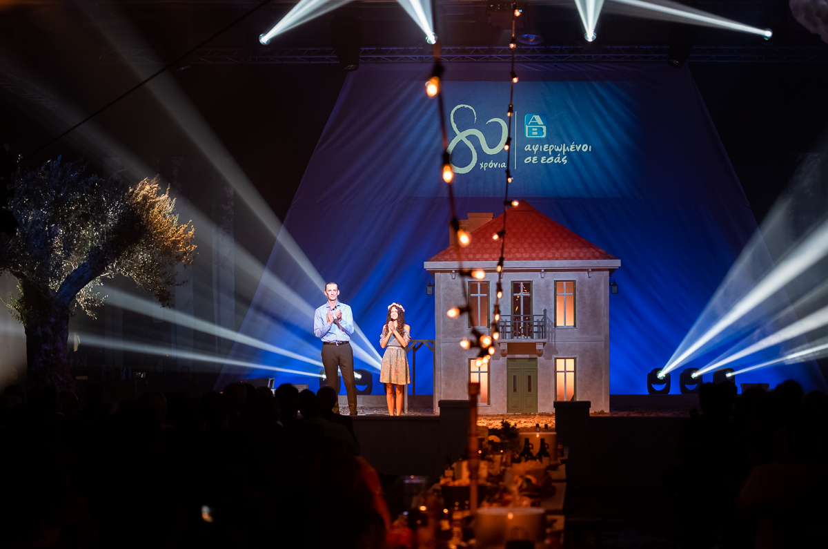 Το σκηνικό της εκδήλωσης ιδιαίτερο. Με έμπνευση από την ελληνική ύπαιθρο και τη φύση, ένα δέντρο έγινε το σύμβολο των αξιών της ΑΒ και ένα σπίτι έγινε το σύμβολο της θέσης που έχει κερδίσει η εταιρεία στο τραπέζι κάθε νοικοκυριού.