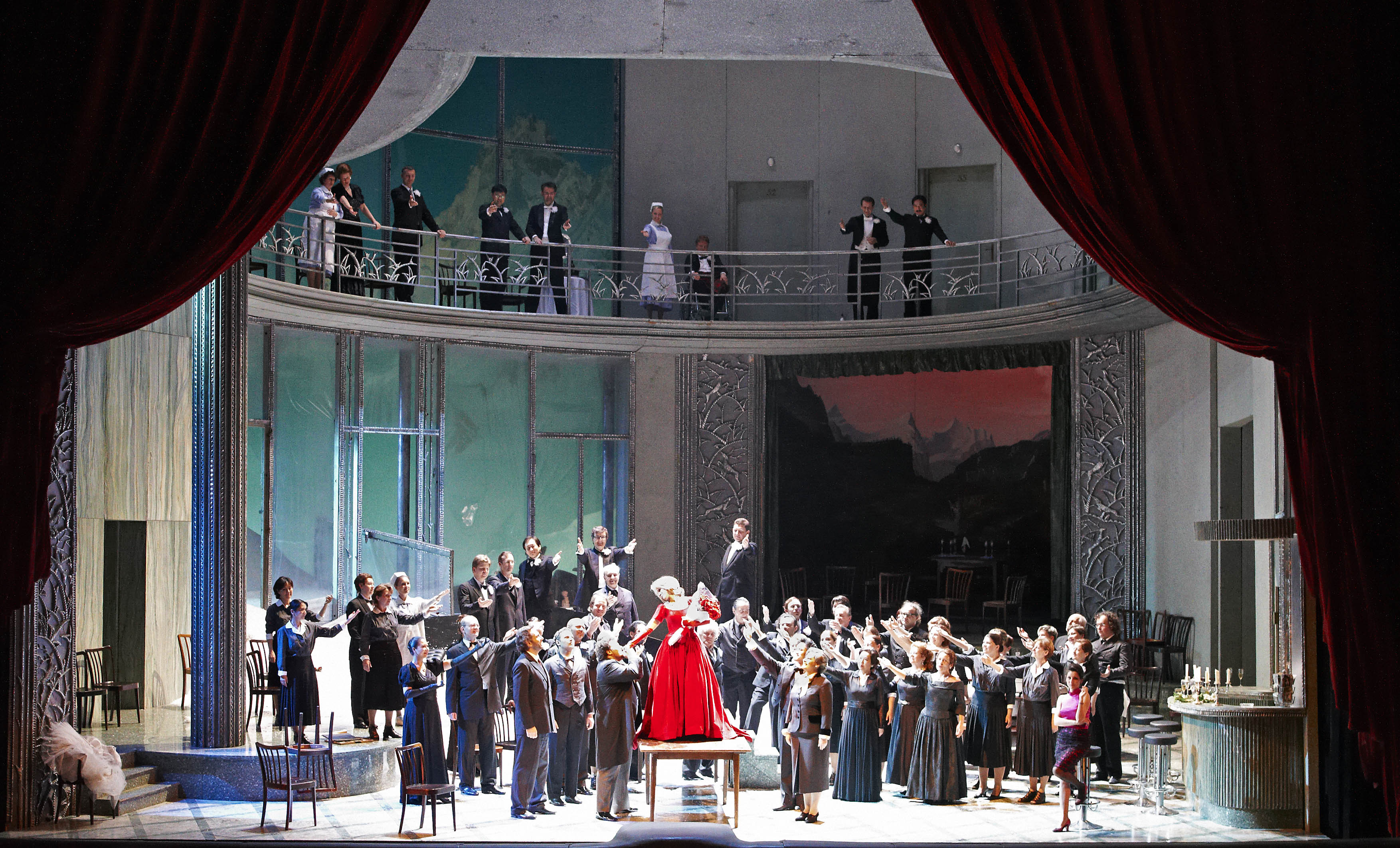 Ο διακεκριμένος σκηνοθέτης της όπερας Μάρκο Αρτούρο Μαρέλλι εμπνεύστηκε για τη σκηνοθεσία της Υπνοβάτιδος από το μνημειώδες αριστούργημα του Τόμας Μαν Το μαγικό βουνό, στο οποίο περιγράφεται ένας κόσμος όπου ο χρόνος μοιάζει να έχει παγώσει. Έτσι επιλέγει να μεταφέρει τη δράση του έργου σε ένα πανδοχείο ή σανατόριο στις ελβετικές Άλπεις, θεωρώντας ότι ανταποκρίνεται απολύτως στη μουσική του Μπελλίνι, με τις μαλακές του μελωδίες, στις οποίες συναντώνται το όνειρο με την πραγματικότητα.
