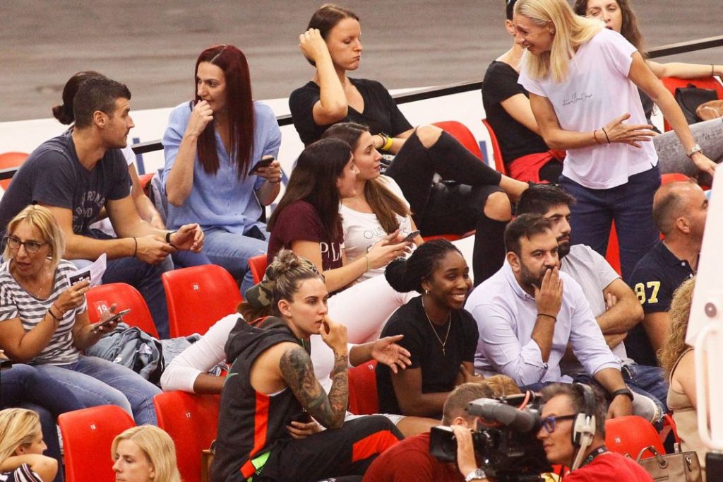 Εκτός από τους 3 χιλιάδες φίλους των γηπεδούχων, από κοντά παρακολούθησε και η ομάδα μπάσκετ γυναικών του Ολυμπιακού.