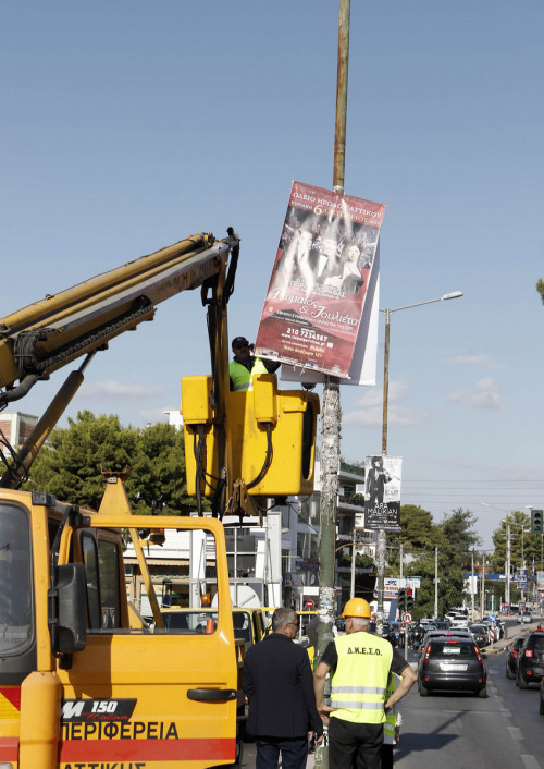 Συνεργεία της Περιφέρειας Αττικής, σε συνεργασία με τους Δήμους και την τροχαία Αττικής, με καλαθοφορά και ειδικά οχήματα σήμανσης αφαίρεσαν παράνομες διαφημιστικές πινακίδες, αφίσες και κάθε διαφημιστικό υλικό που υπάρχει σε κόμβους κεντρικών οδικών αρτηριών της Αττικής.
