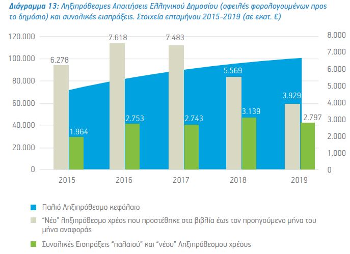 Την περίοδο Ιανουαρίου-Ιουλίου του 2019, οι συνολικές εισπράξεις έναντι ληξιπρόθεσµων απαιτήσεων του ελληνικού ∆ηµοσίου ανήλθαν σε €2.797 εκατ.