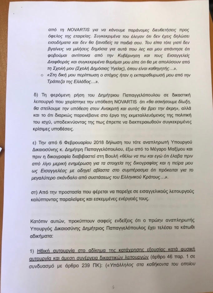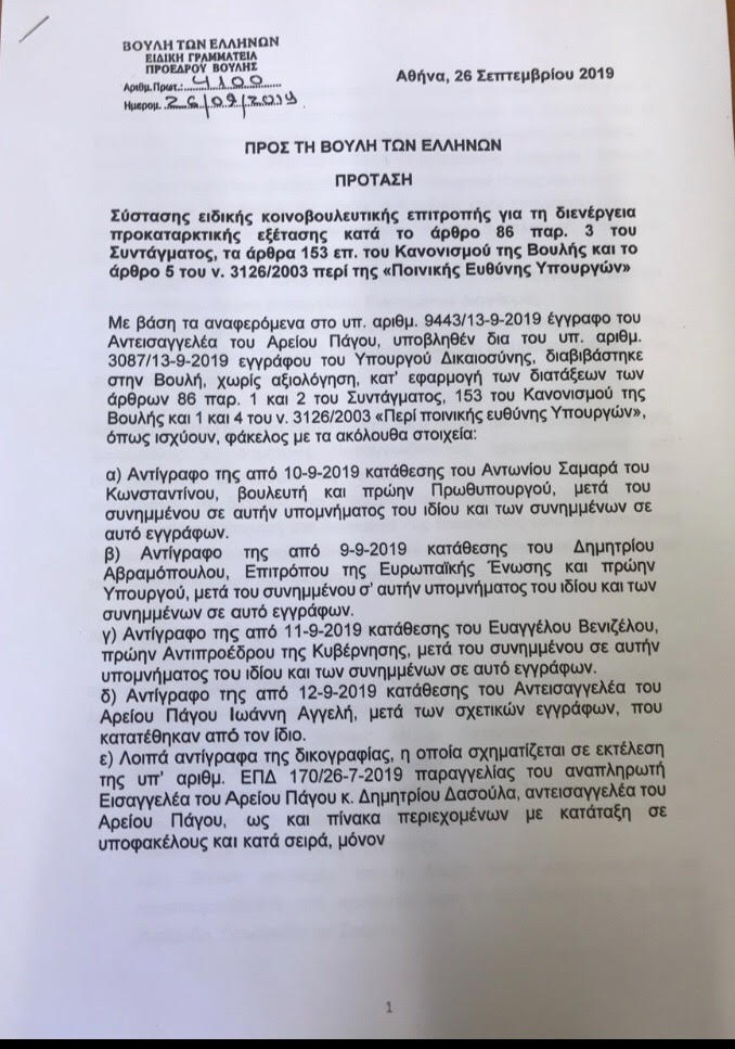 Κατατέθηκε στη Βουλή η πρόταση 30 βουλευτών της ΝΔ για τη σύσταση ειδικής κοινοβουλευτικής επιτροπής προς διενέργεια προκαταρκτικής εξέτασης κατά του πρώην αναπληρωτή υπουργού Δικαιοσύνης, Δημήτρη Παπαγγελόπουλου για την υπόθεση Novartis.