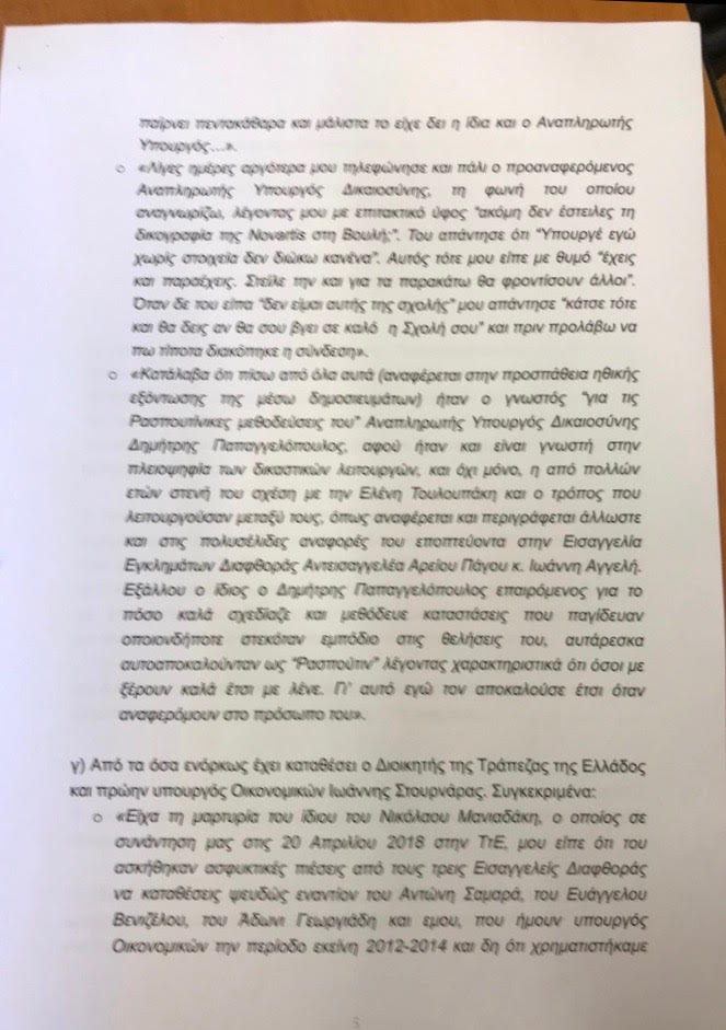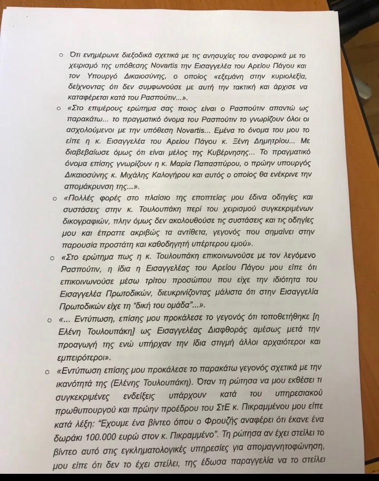 Ωστόσο, νέα δεδομένα στην πολυεπίπεδη έρευνα, που βρίσκεται σε πλήρη εξέλιξη εκτός από το κοινοβουλευτικό πεδίο και τον δικαστικό, δημιουργεί και η κατάθεση της πρώην εισαγγελέως Διαφθοράς Ελένης Ράικου, η οποία ενόρκως κατονόμασε τον Δημήτρη Παπαγγελόπουλο ως το πρόσωπο που κρύβεται πίσω από τον «Ρασπούτιν».